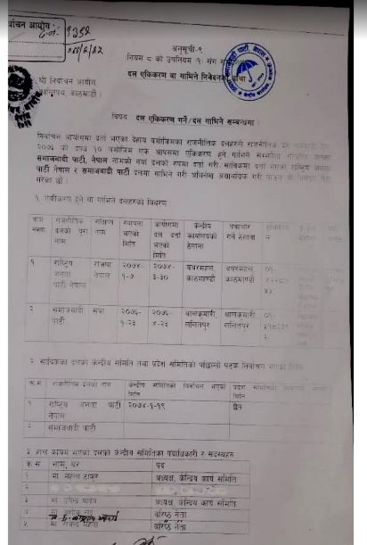 सरकारले दल फुटाउन सहज हुने गरी अध्यादेश ल्याएपछि दुई पार्टीबीच वैशाख १० गते मध्यरातमा पार्टी एकताको सहमति जुटेको थियो । तर नेतृत्वमा सहमति जुट्न नसक्दा जसपा निर्वाचन आयोगमा दर्ता हुन सकेको थिएन ।