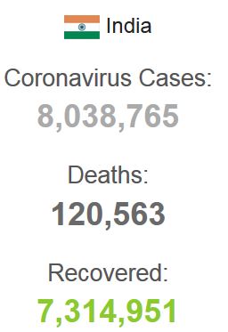 भारतमा कोरोना संक्रमितको संख्या ८० लाख नाघेको छ ।