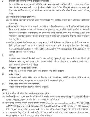 नेपाली सेनाले विभिन्न पदका लागि जागिर खुलाएको छ।