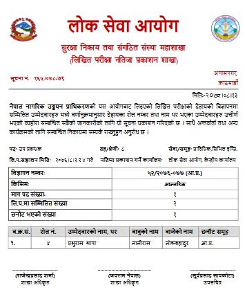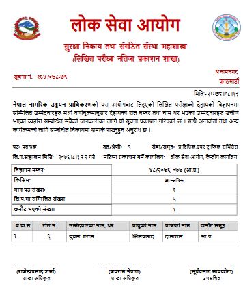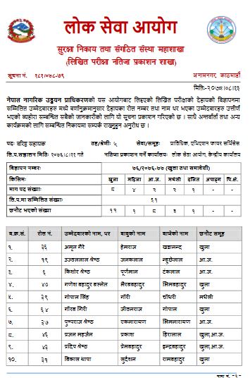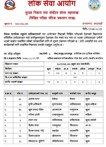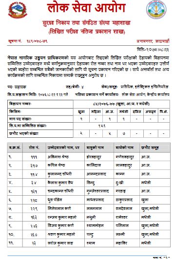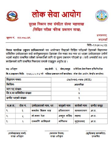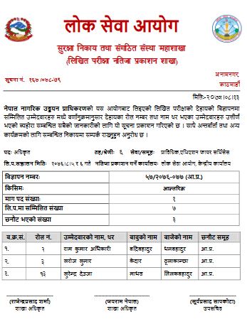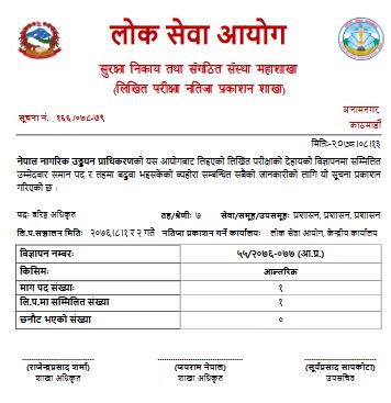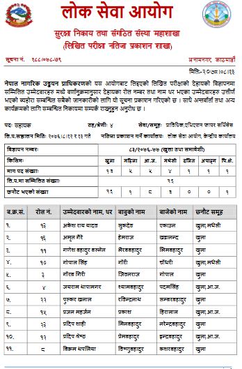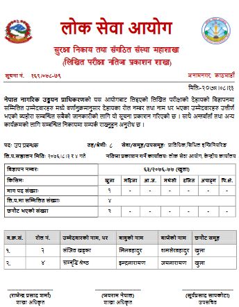 नेपाल नागरिक उड्डयन प्राधिकरणको लिखित परीक्षाको नतिजा सार्वजनिक भएको छ ।