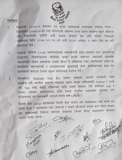 सोमबार बसेको जिल्ला विपद् व्यवस्थापन समिति धनुषाको बैठकले थप एक साता निषेधाज्ञा लम्ब्याउने निर्णय गरेको धनुषाका प्रमुख जिल्ला अधिकारी बन्दुप्रसाद बास्तोलाले जानकारी दिए ।