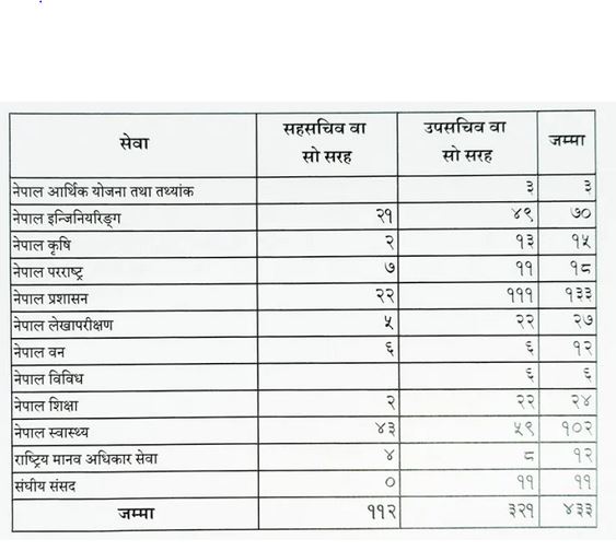सहसचिव पदमा ११२ र उपसचिव पदमा ३२१ गरी जम्मा ४३३ जनाका लागि विज्ञापन खुलेको हो ।