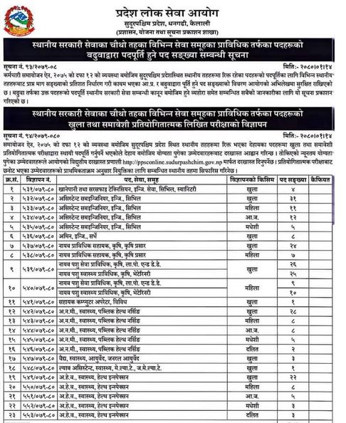 सुदूरपश्चिम प्रदेश लोक सेवा आयोग द्धारा कर्मचारीका लागि दरखास्त आह्वान