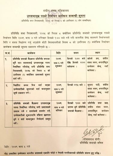 माघ ७ गते प्रतिनिधिसभाको उपभामुख निर्वाचन हुने भएको छ ।